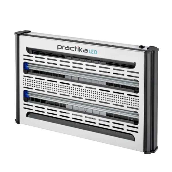 Una trampa de luz LED para insectos eficaz y de fácil mantenimiento, ideal para la preparación de alimentos, cocinas comerciales, producción de alimentos, supermercados y lugares similares. La tecnología avanzada de LED UV de Practika LED ofrece menores costos de funcionamiento, alta eficacia y monitoreo sostenible de insectos.